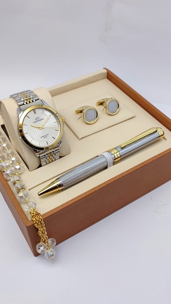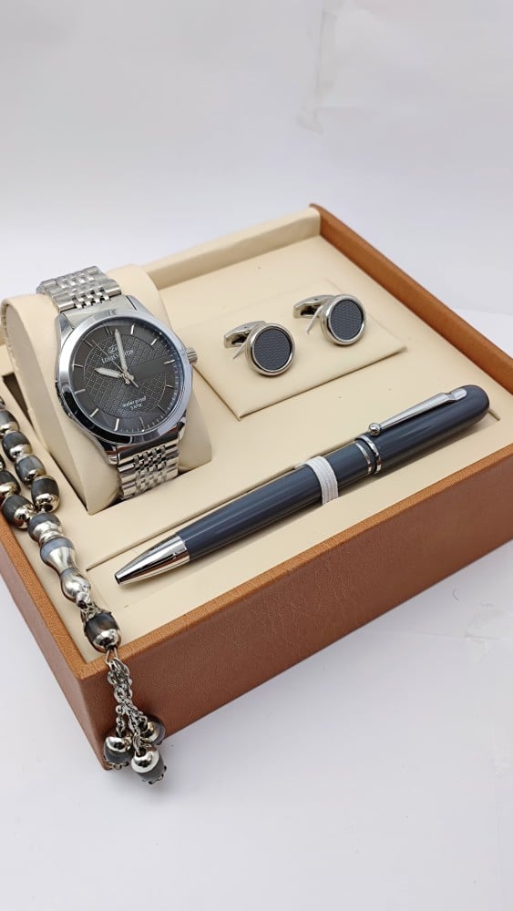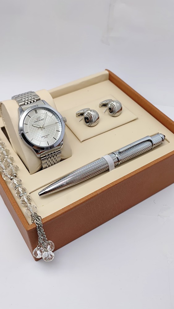 - نوع المنتج : طقم ساعة رجالية ستيل مع كبك وقلم وسبحة