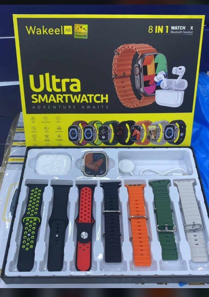 تسوق الآن ساعة وسماعة سمارت ووتش الترا مع 7 أساور وايربود يعد أحدث ابتكار في عالم التكنولوجيا القابلة للارتداء ، يجمع بين الأناقة والوظائف المريحة لمساعدتك على البقاء متصلاً ومطلعًا على كل ما يحدث في حياتك ، تحتوي هذه الساعة الذكية على ميزة العرض الدائم ، مما يتيح لك رؤية الوقت والتنبيهات والإشعارات في أي وقت من الأوقات دون الحاجة إلى إشعال الشاشة ، كما تأتي الساعة بمجموعة من الأساور القابلة للتبديل ، مما يتيح لك تخصيص مظهرك وفقًا لذوقك الشخصي .